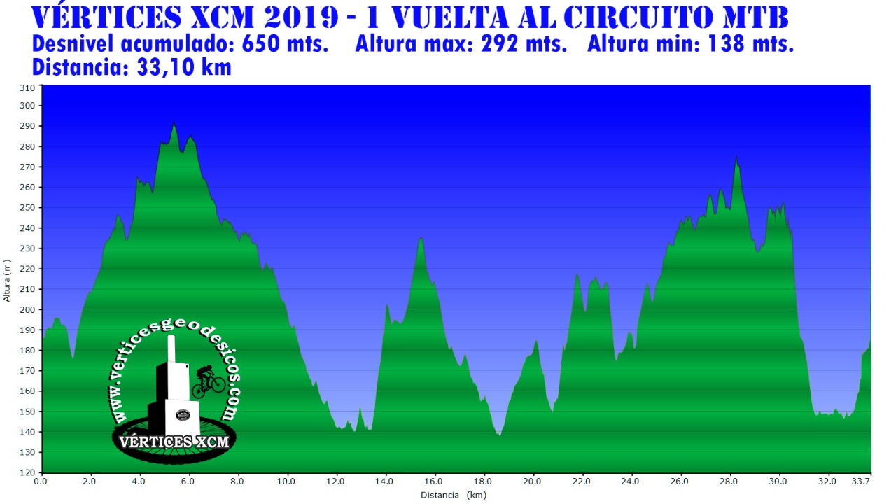 Una vuelta al circuito son 33 km y +650 mts de desnivel, la XCM (ruta Larga) son dos vueltas, por tanto, 65 km y +1300 mts desnivel. Descarga el perfil pulsando aquí