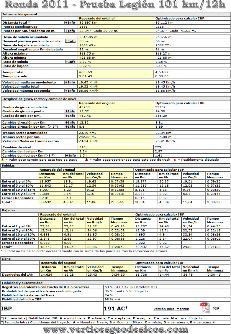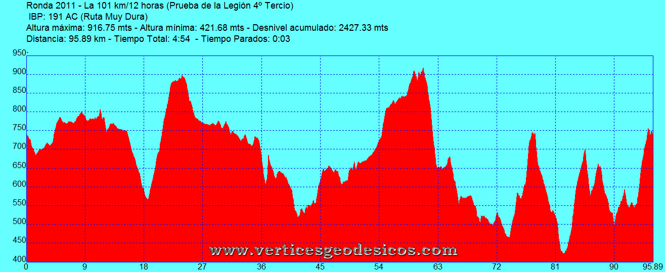| 101 Km / 12 Horas (Legión) | Marcha | 07/05/2011 | Ronda (Malaga) | 191 | 2427 m | 101 | ||||