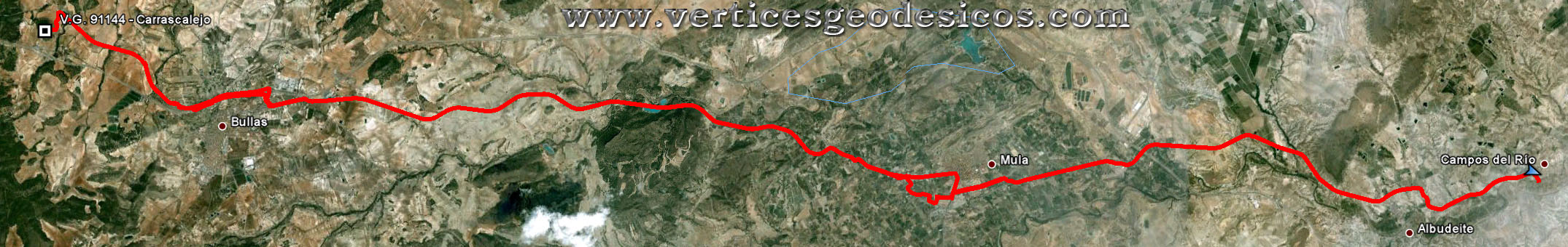 Salida y llegada en Campos del Río. Salimos dirección Albudeite, giramos a la derecha en la segunda redonda que nos encontramos, pronto pasamos por el primer puente de la Vía verde (vamos por buen camino), medio kilometro más allá la estación de Albudeite. Ahora cogemos al final de la carretera el camino de la vía verde del Noroeste, pasamos por los Baños, Mula, El niño y Bullas. Atravesamos la ciudad de Bullas y reanudamos la vía verde hacia Caravaca, a pocos kilómetros de Bullas nos encontramos el monte Carrascalejo y el vértice, es necesario dejar la bici y andar unos 10 minutos monte a través, es un monte fácil, no es necesario equipación de ninguna clase.