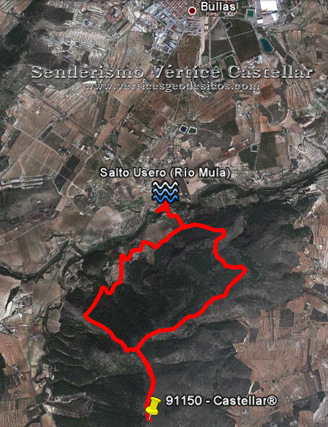 Ruta de Senderismo hasta el vértice Castellar disfrutando sobre todo del bello paraje del Salto del Usero en el Río Mula cerca de Bullas. Recomendamos realizar esta ruta en verano para darse un refrescante baño. La subida se realiza por una cómoda Senda y la bajada un poco más abrupta por un cortafuegos hasta llegar a una amplia pista de montaña.