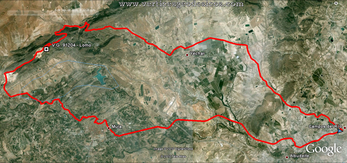 Llegamos al vértice Lomo, las vistas son buenas, desde luego precioso el pantano de la Cierva situado muy cerca del pueblo de Mula.